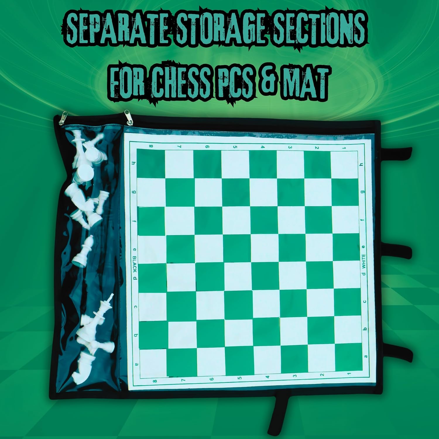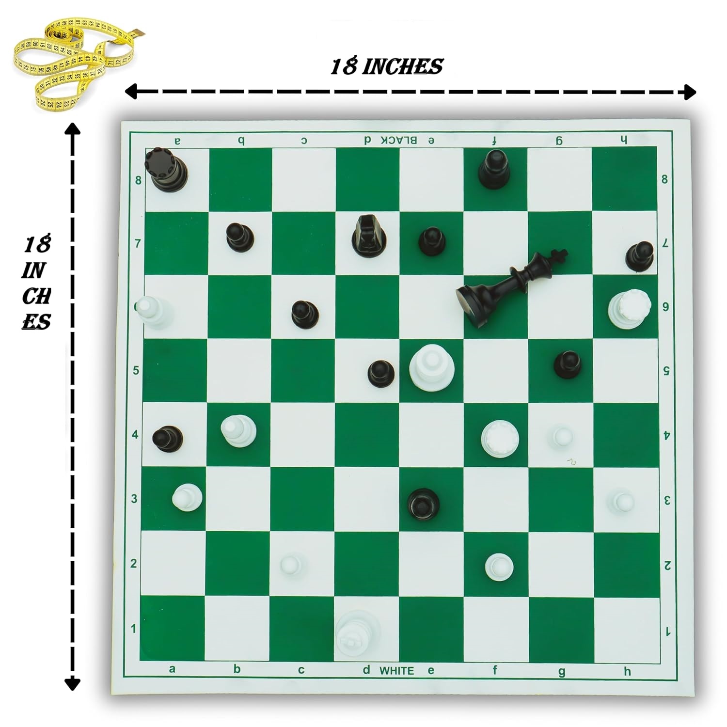 • Green vinyl chess mat includes algebraic notation for game analysis